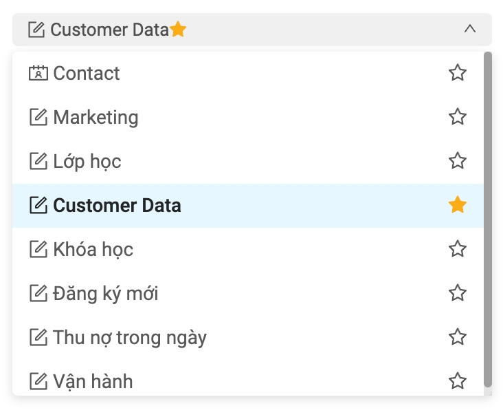 3.Data tab: You can choose to change the data tables to view, edit, delete, customer data related to the tables. Note: in this section we can choose so that a data table we want to prioritize to view, prioritize to display.