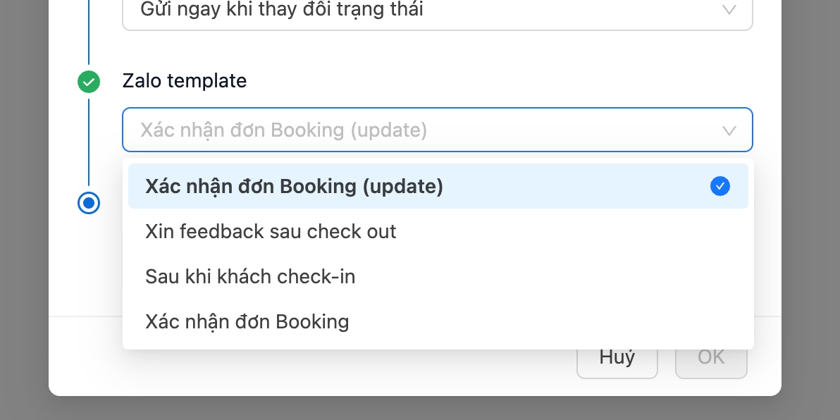 Bước 5: Chọn hình thức gửi tin nhắn, gửi ngay sau khi thay đổi trạng thái hoặc tin nhắn nhắc nhở.