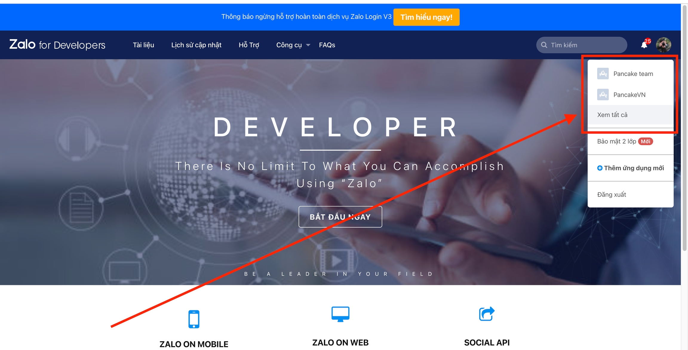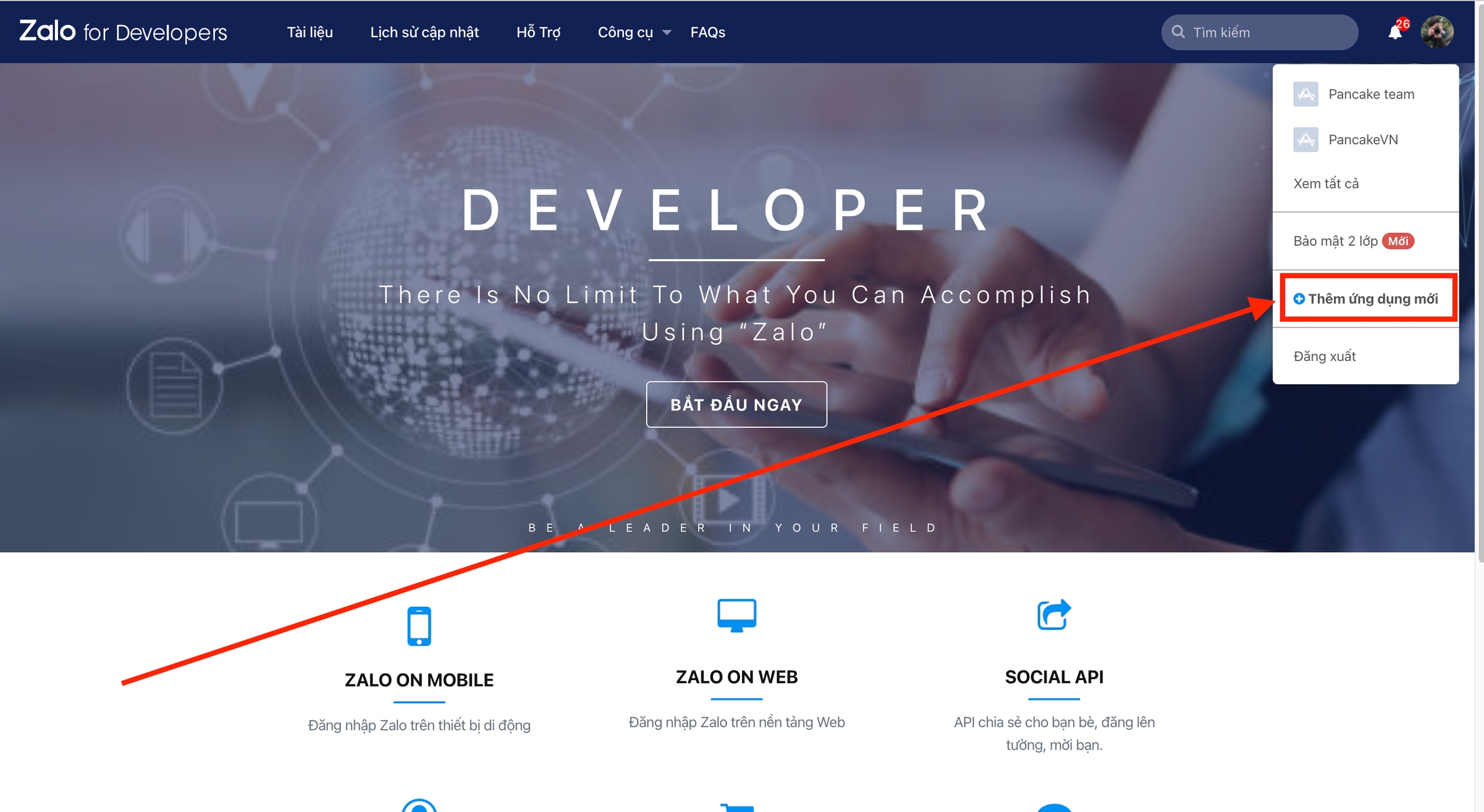 Bước 1: Đăng nhập Zalo develop, truy cập tại link tại đây. Nếu chưa có bạn vui lòng đăng ký Zalo Cloud. Lưu ý: Nếu đã có tài khoản Zalo Cloud rồi bạn vẫn cần thiết thực hiện bước 3 và bước 4! Trước khi lấy mã ID ứng dụng và khóa bí mật để đăng nhập vào POS