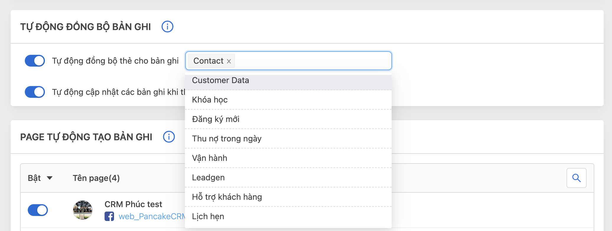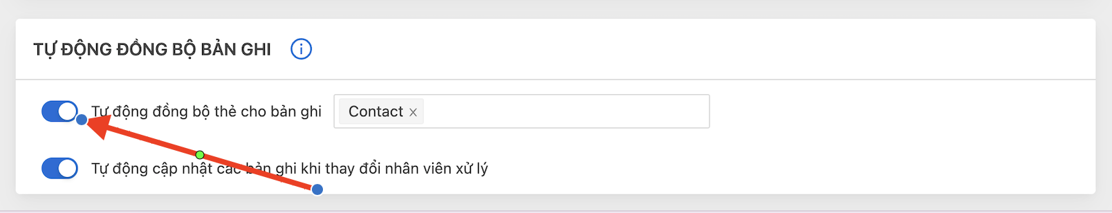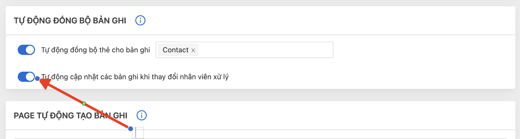 **Bước 3:** Bật tự đồng bộ thẻ cho bản ghi&#x20;