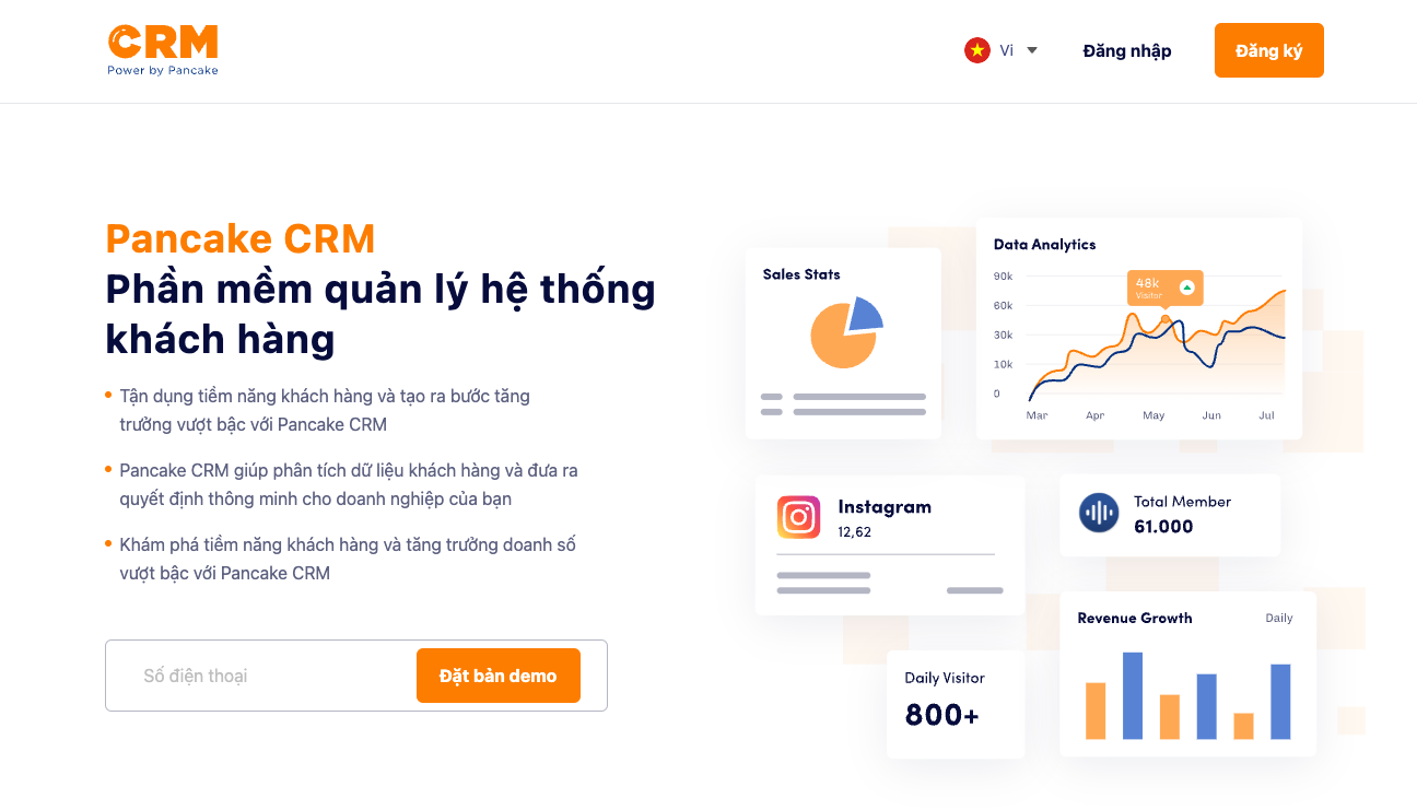 **Bước 1: Nhân viên cần đăng nhập vào CRM:** Trước khi thêm nhân viên vào CRM, bạn cần phải chắc chắn rằng <mark style="color:orange;">**nhân viên của mình đã có tài khoản CRM**</mark>, hay đã đăng nhập vào CRM của Pancake: [**crm.pancake.vn**](https://crm.pancake.vn/)