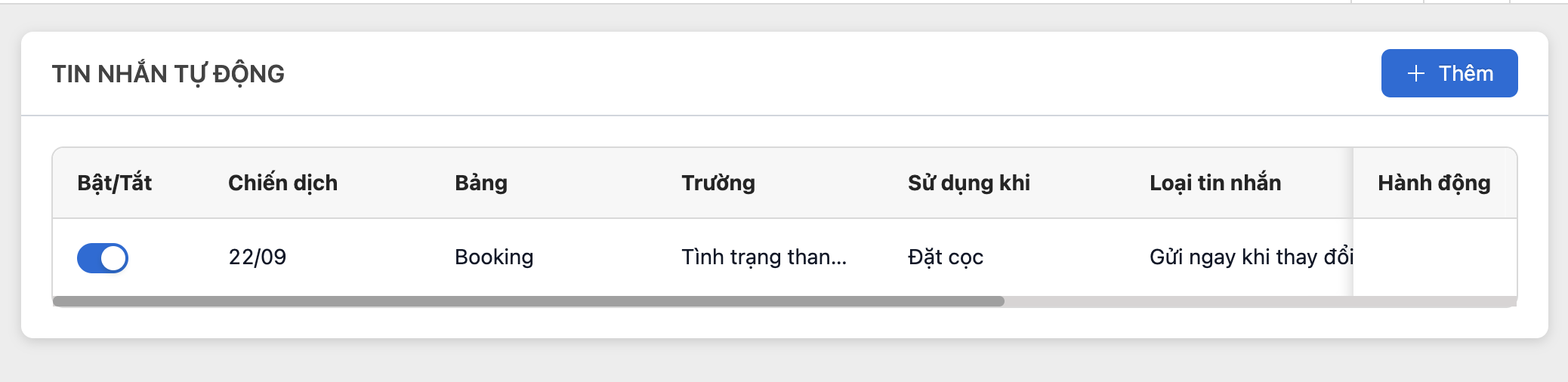 <figure><img src="https://961808962-files.gitbook.io/~/files/v0/b/gitbook-x-prod.appspot.com/o/spaces%2FXOUuQVhYSeLJNqAEHOIH%2Fuploads%2FV2rQeNjvKZ8o5aYkkm4g%2FA%CC%89nh%20chu%CC%A3p%20Ma%CC%80n%20hi%CC%80nh%202023-09-25%20lu%CC%81c%2015.04.58.png?alt=media&#x26;token=3bd552cc-713d-4adb-a746-3f8419391696" alt="" width="563"><figcaption><p>Thêm mới => điền tên chiến dịch gửi tin nhắn</p></figcaption></figure>