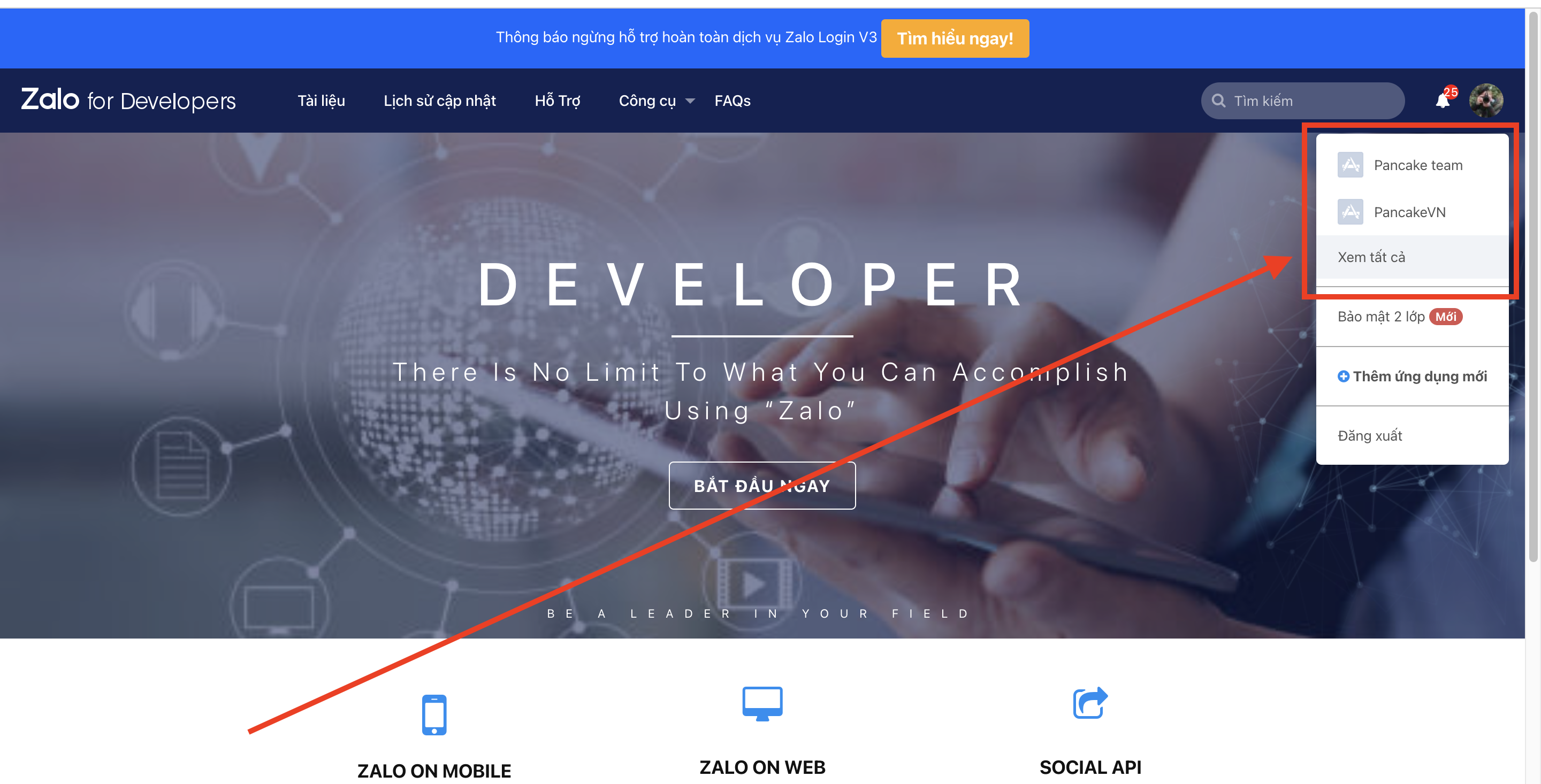 **Bước 1:** Truy cập vào[ **Zalo for Developer**](https://developers.zalo.me/), Đảm bảo rằng các cầu hình phía trên bạn đã thực hiện đầy đủ.