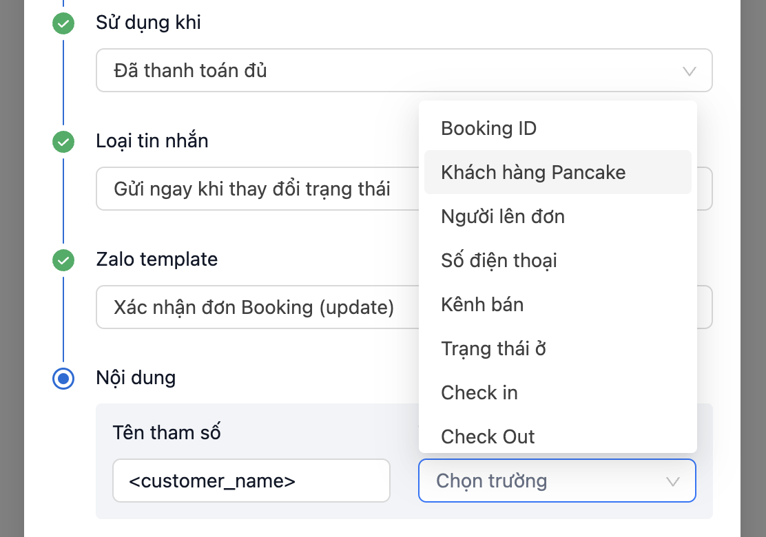 ## B. Khớp tham số trên ZNS và Pancake CRM